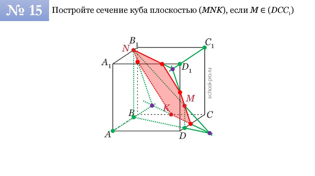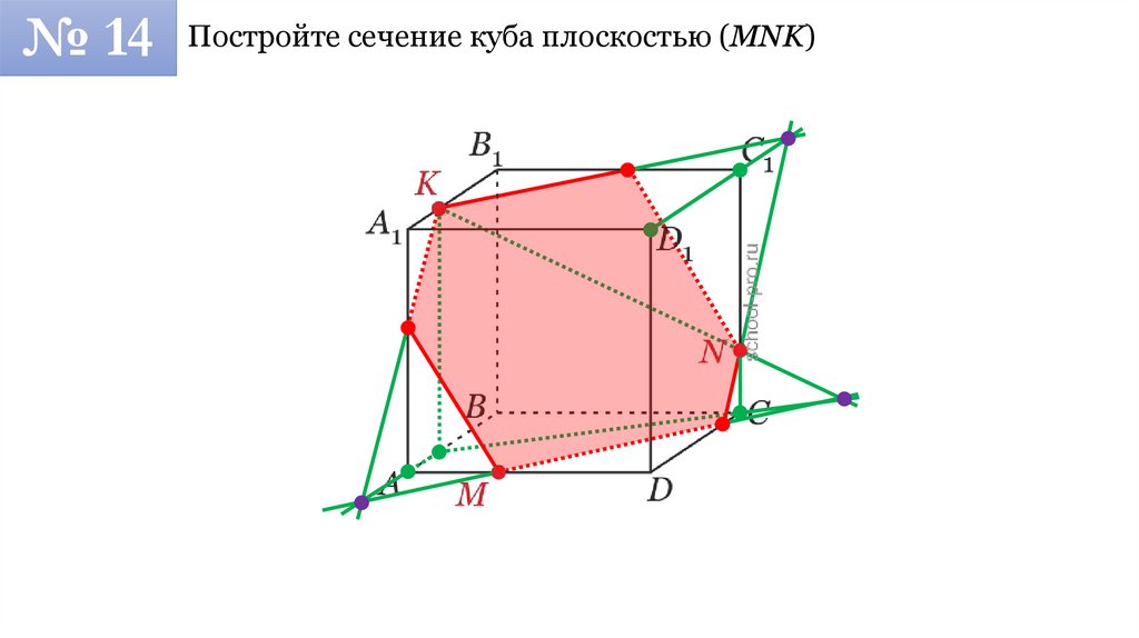 № 14 Постройте сечение куба плоскостью (MNK)15.