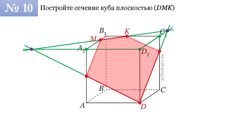 № 10 Постройте сечение куба плоскостью (DMK)11.
