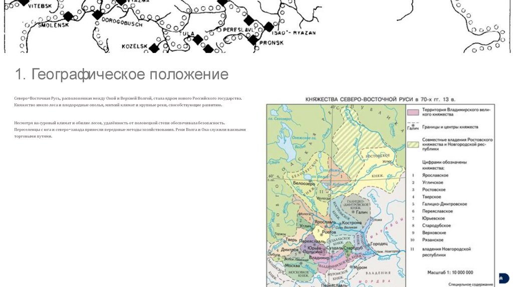 1. Географическое положениеСеверо-Восточная Русь, расположенная между Окой и Верхней Волгой, стала ядром нового Российского государства.