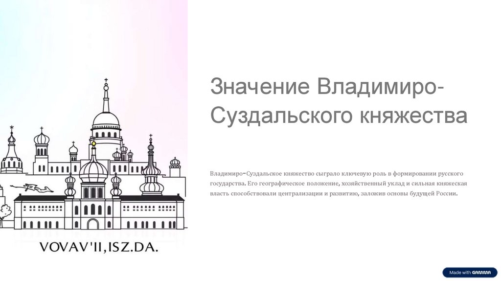 Значение ВладимироСуздальского княжестваВладимиро-Суздальское княжество сыграло ключевую роль в формировании русского