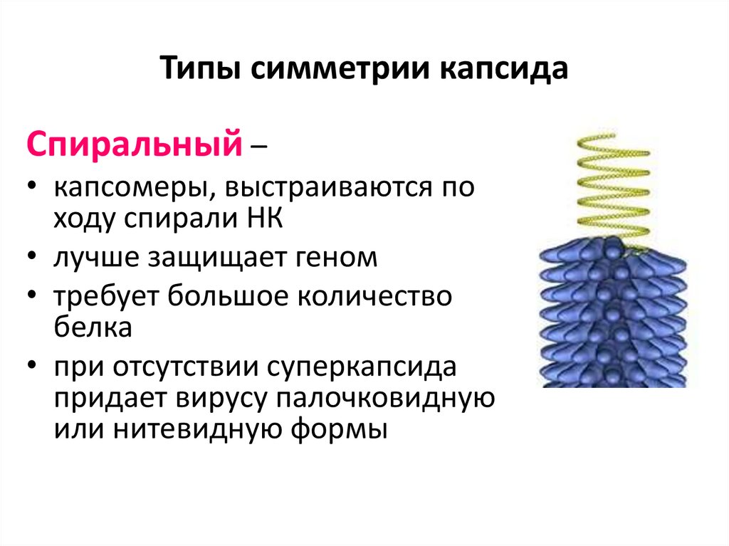 Типы симметрии капсидаСпиральный –