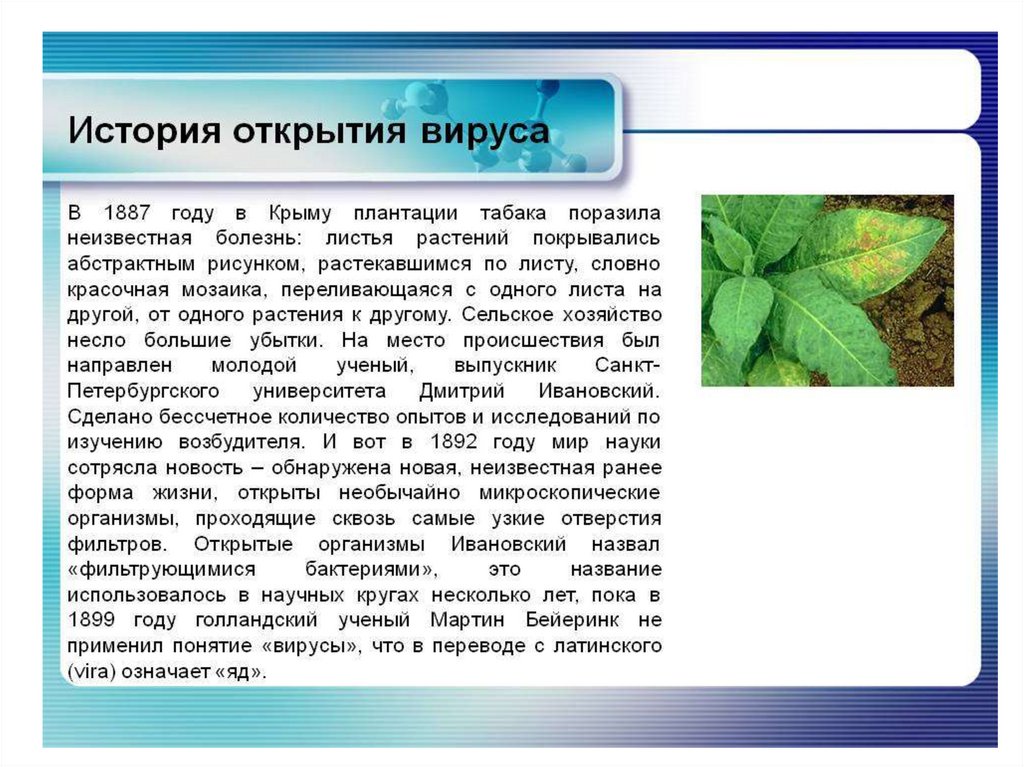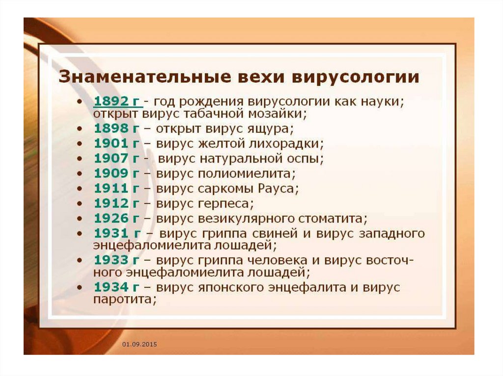 рождения новой науки –ВИРУСОЛОГИИ