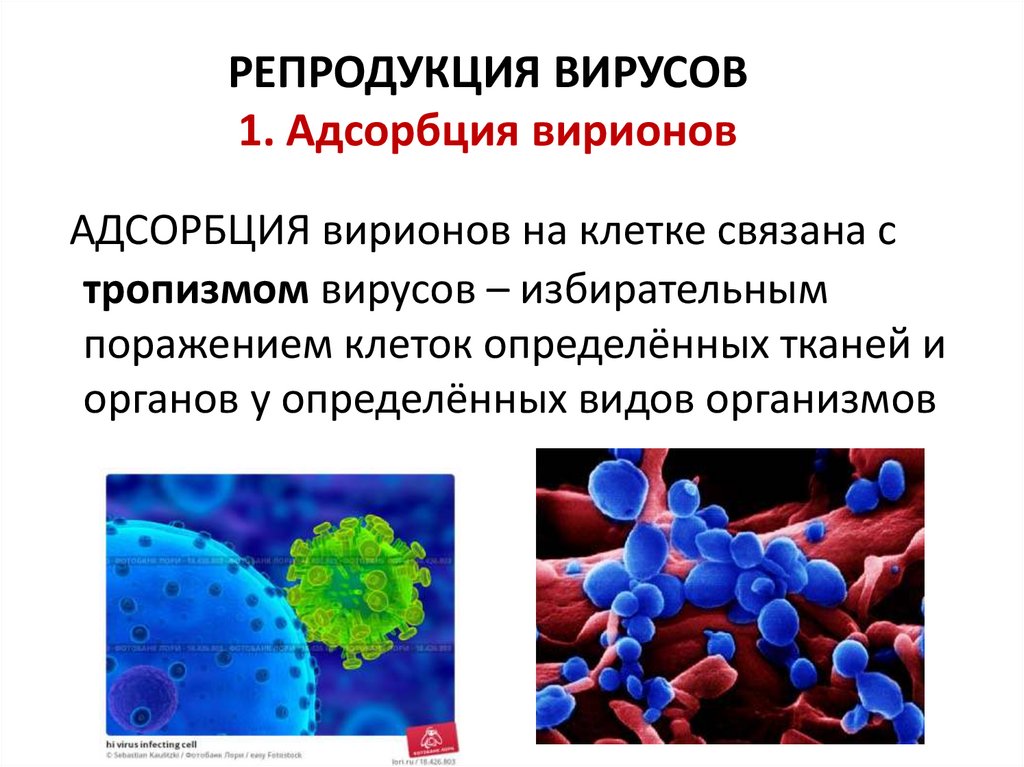 РЕПРОДУКЦИЯ ВИРУСОВ1. Адсорбция вирионов