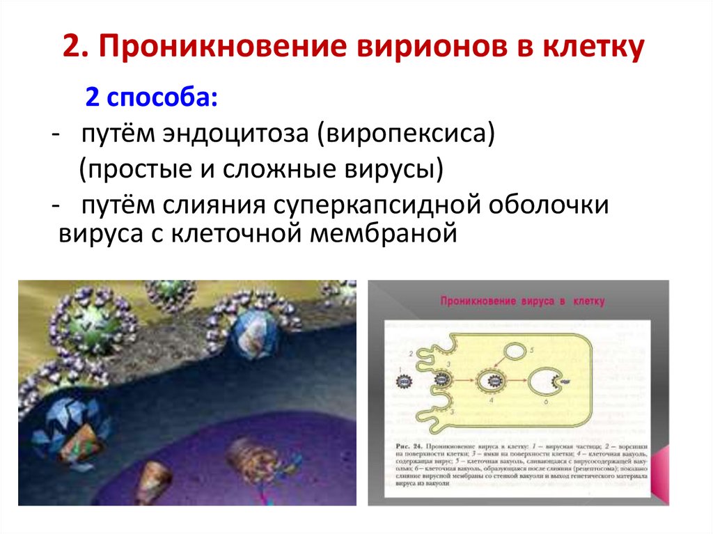 2. Проникновение вирионов в клетку2 способа: