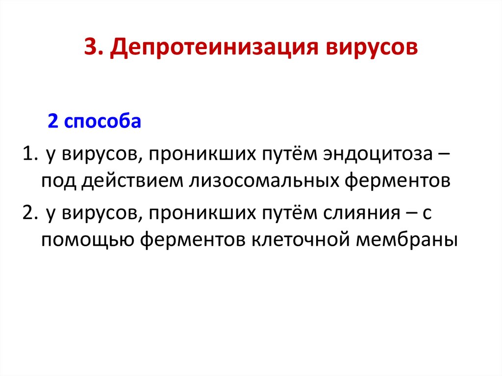 1. у вирусов, проникших путём эндоцитоза –
