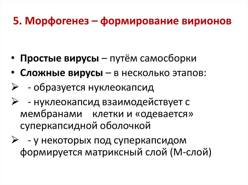 5. Морфогенез – формирование вирионов• Простые вирусы – путём самосборки