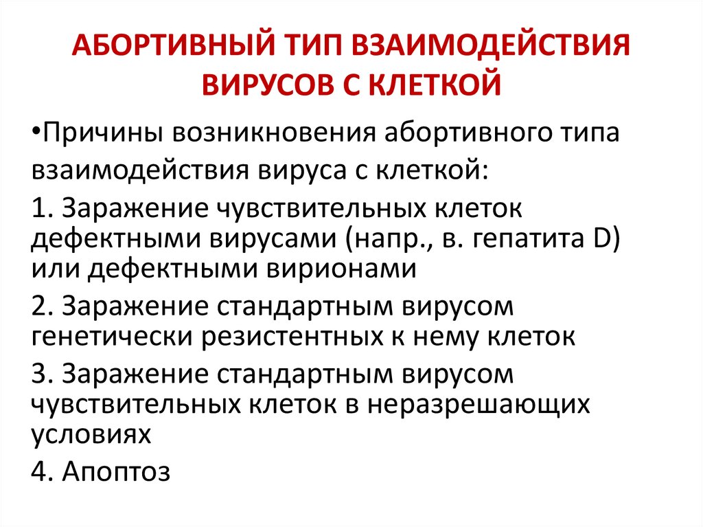 АБОРТИВНЫЙ ТИП ВЗАИМОДЕЙСТВИЯВИРУСОВ С КЛЕТКОЙ