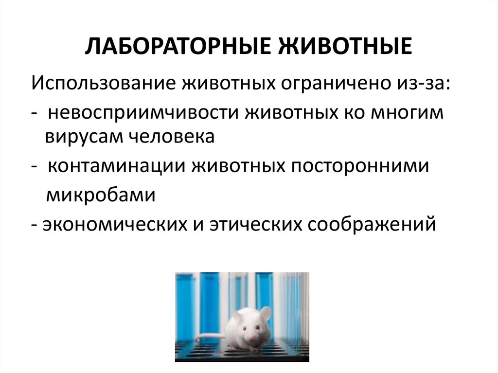 ЛАБОРАТОРНЫЕ ЖИВОТНЫЕИспользование животных ограничено из-за: