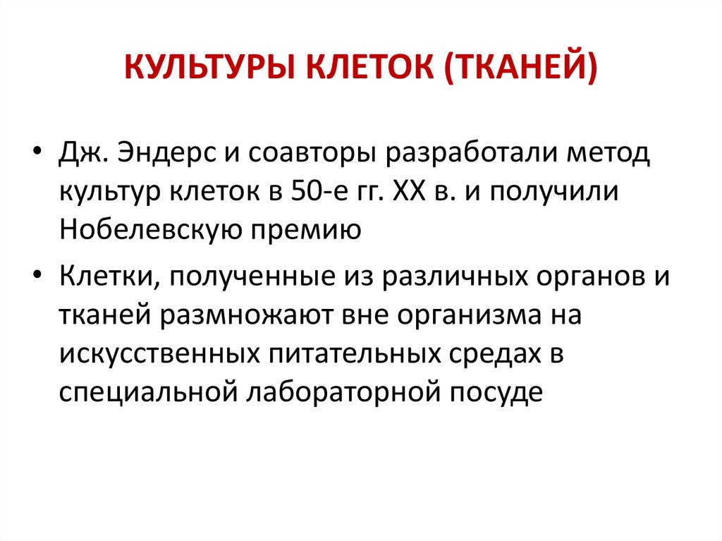 культур клеток в 50-е гг. ХХ в. и получили
