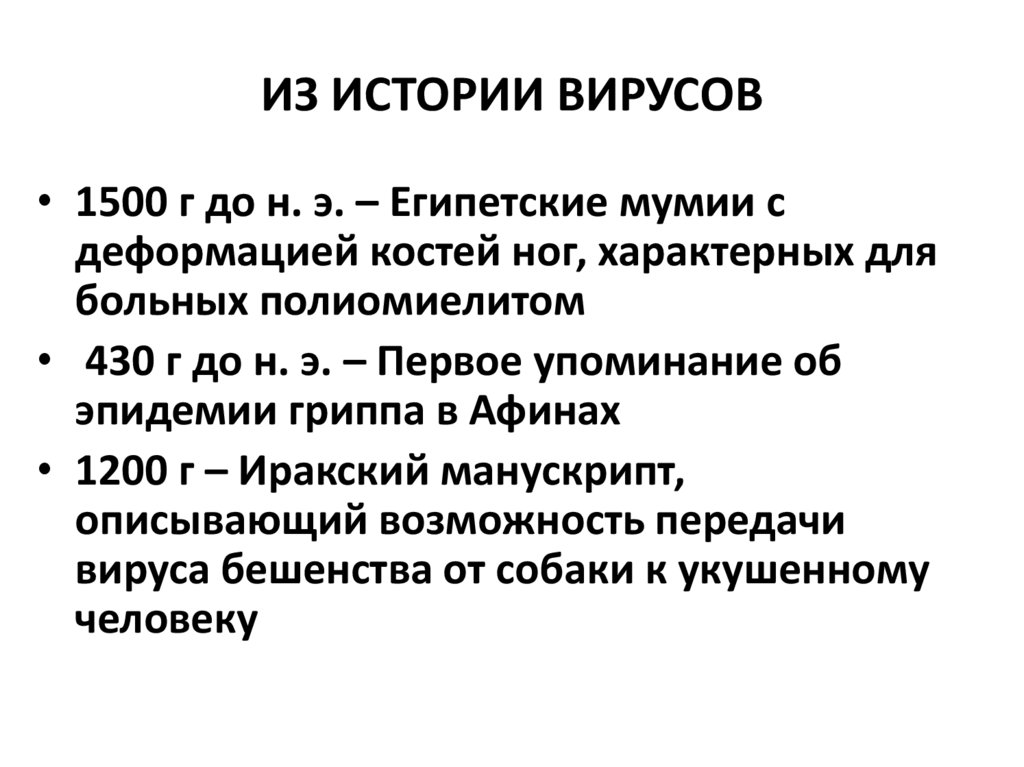 ИЗ ИСТОРИИ ВИРУСОВ• 1500 г до н. э. – Египетские мумии с