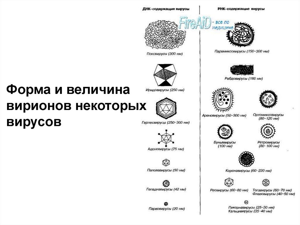 Форма и величинавирионов некоторых