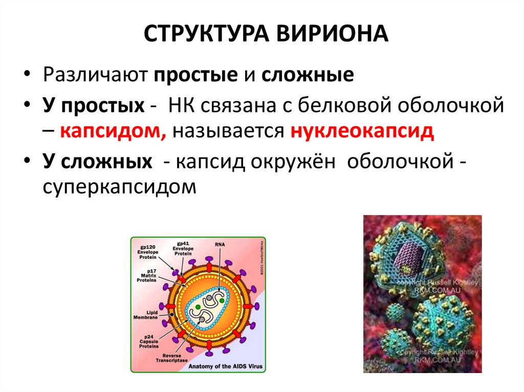 (простые и сложные вирусы)