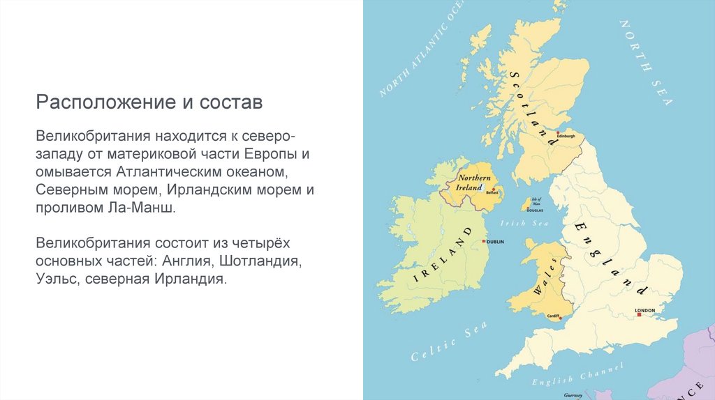 Расположение и составВеликобритания находится к северозападу от материковой части Европы и