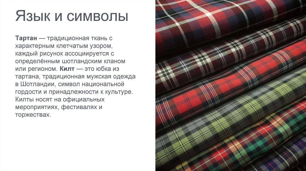 Язык и символыТартан — традиционная ткань с