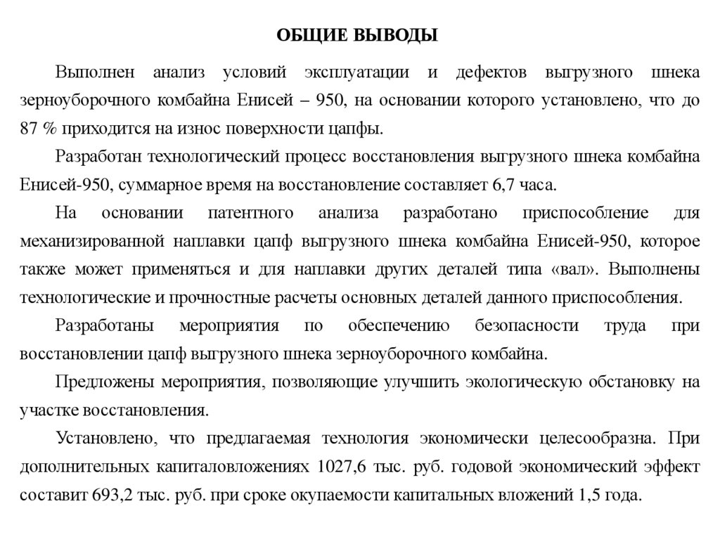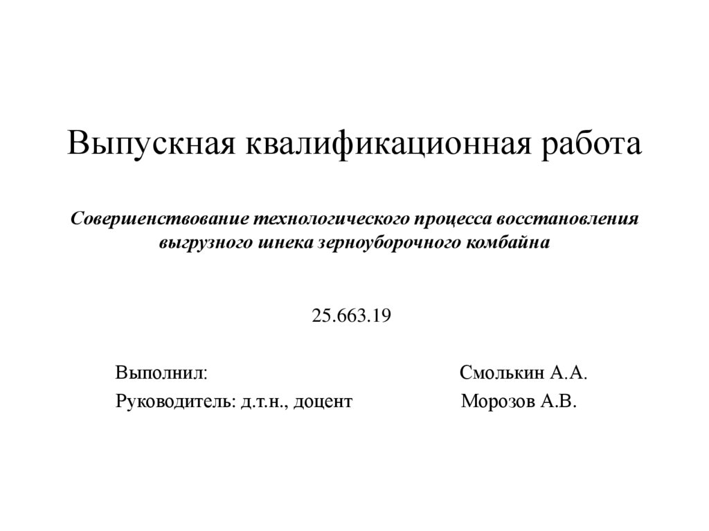 1. Выпускная квалификационная работа Совершенствование технологического процесса восстановления выгрузного шнека зерноуборочного