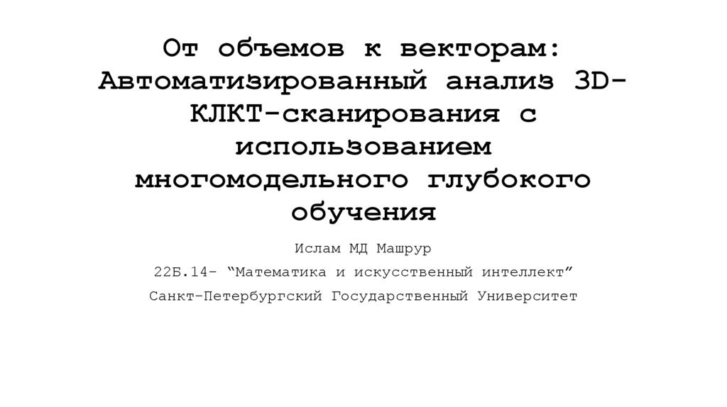 1. От объемов к векторам: Автоматизированный анализ 3D-КЛКТ-сканирования с использованием многомодельного глубокого обучения