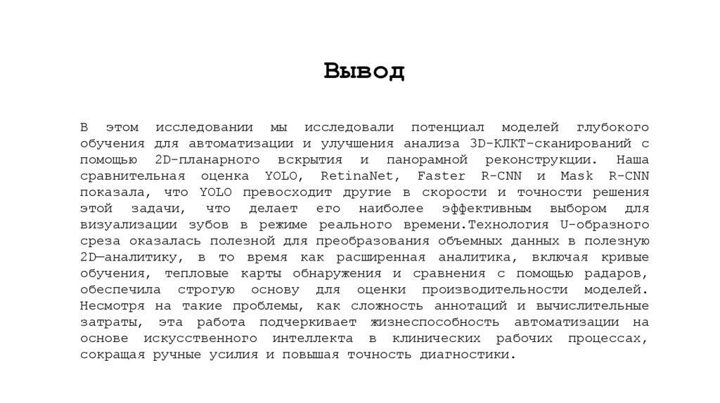 ВыводВ этом исследовании мы исследовали потенциал моделей глубокого