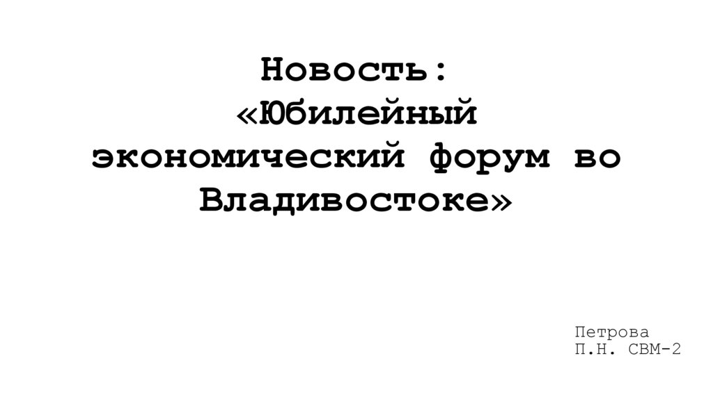 1. Новость: «Юбилейный экономический форум во Владивостоке»