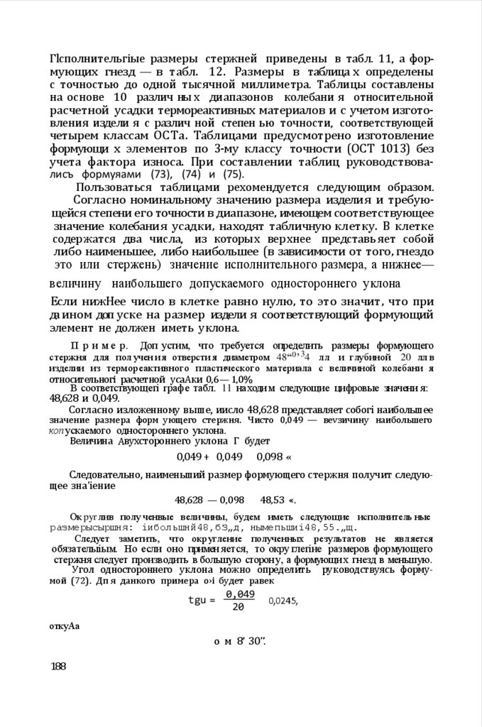Во второе издание кгіиги также вкліочены таблицы испол нительных размеров охватываемы х и охватывающих формующи х элементов, при составлении которых была использована электронносчетная машина «Минск-1».