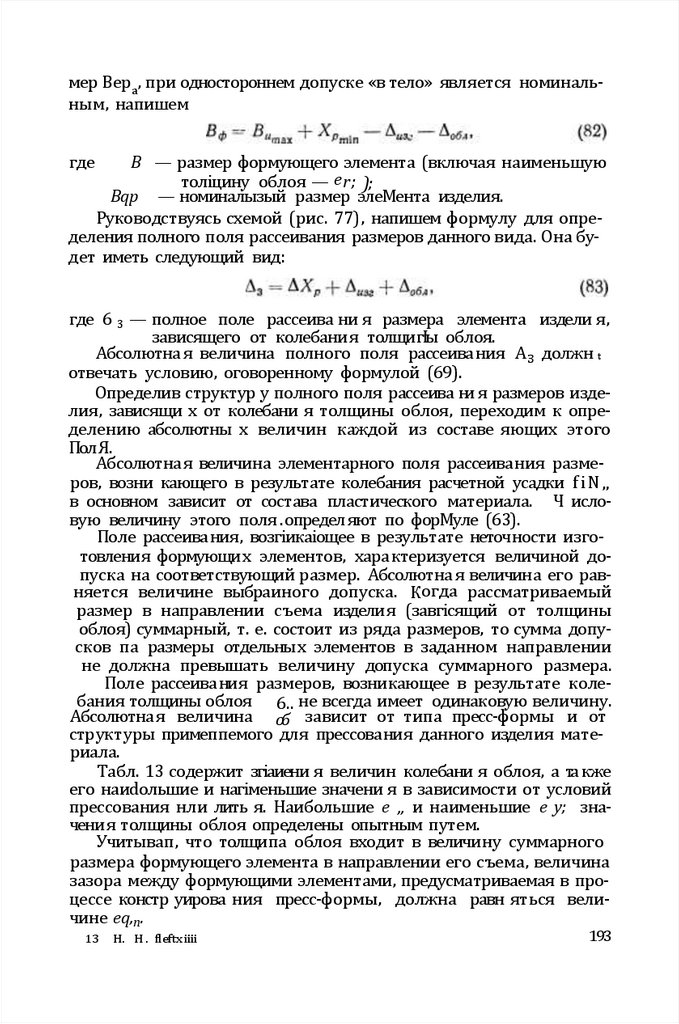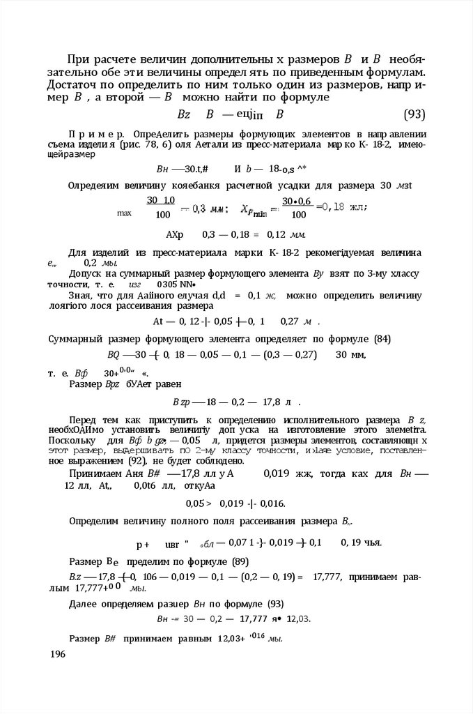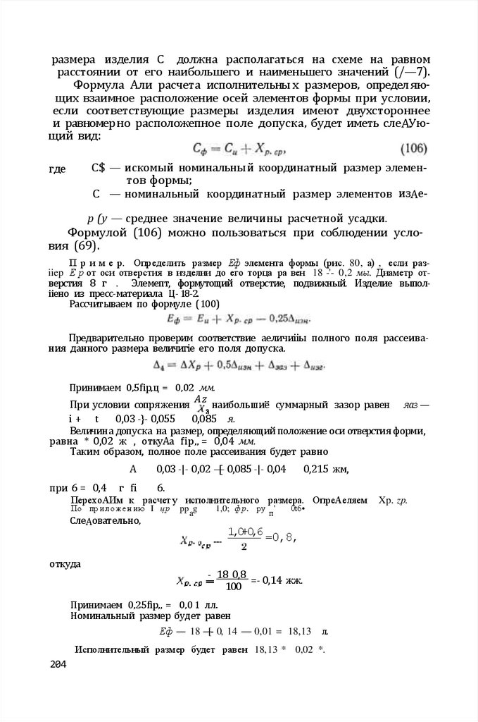 Г л а в а IV. РасНет испопнительны х размеров формуіощих элементов