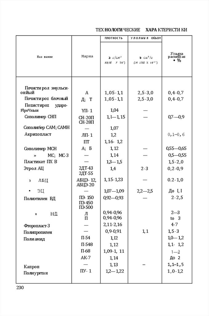 исполнительных размеров отдельных деталей пресс-форм. Приведены основные характеристики наиболее распростр аненных пластмасс и обор удования, примен яемого при переработке пластмасс