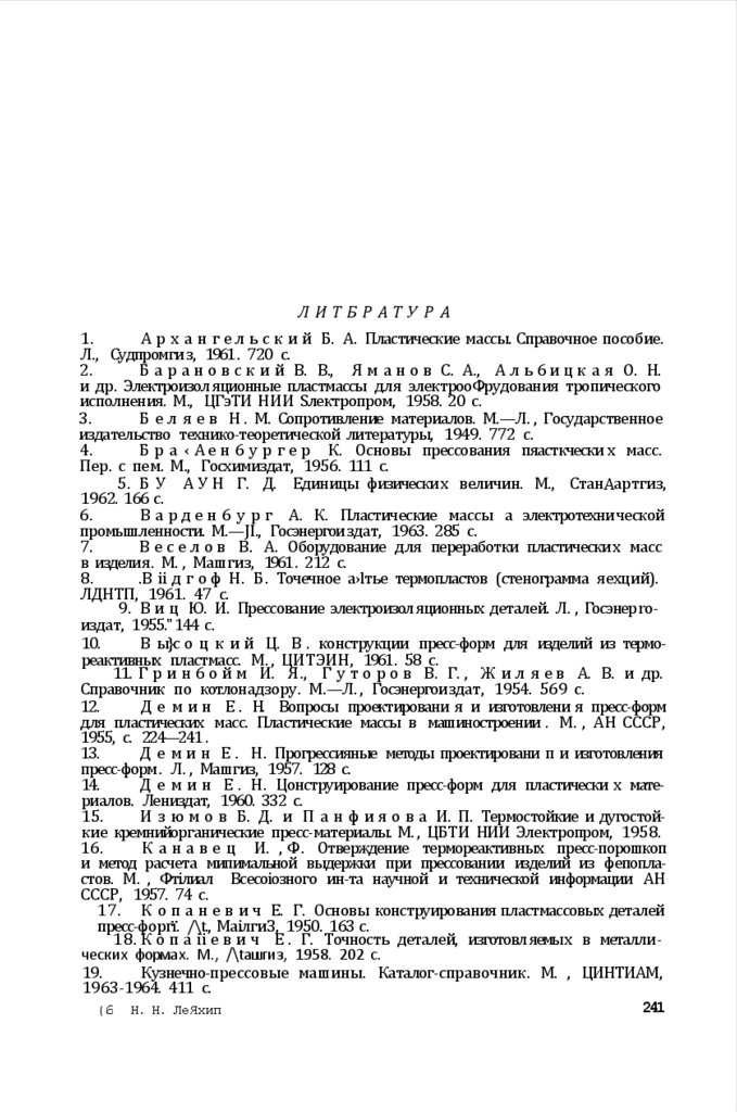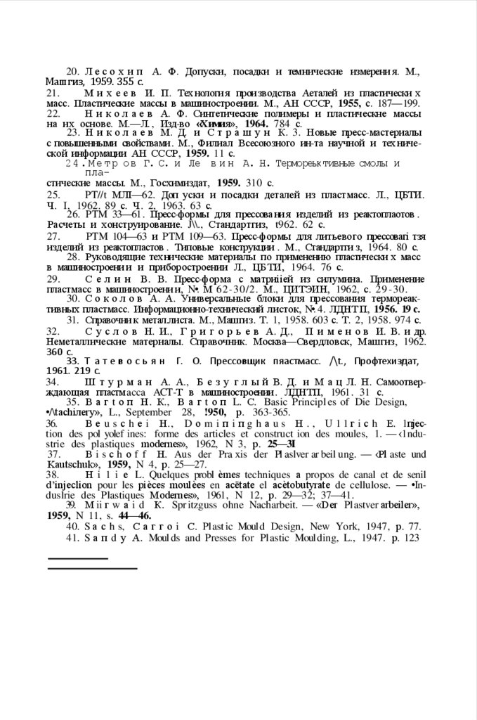 41. S а п d у А. Moul ds and Presses for Plastic Moulding, L., 1947. р. 123