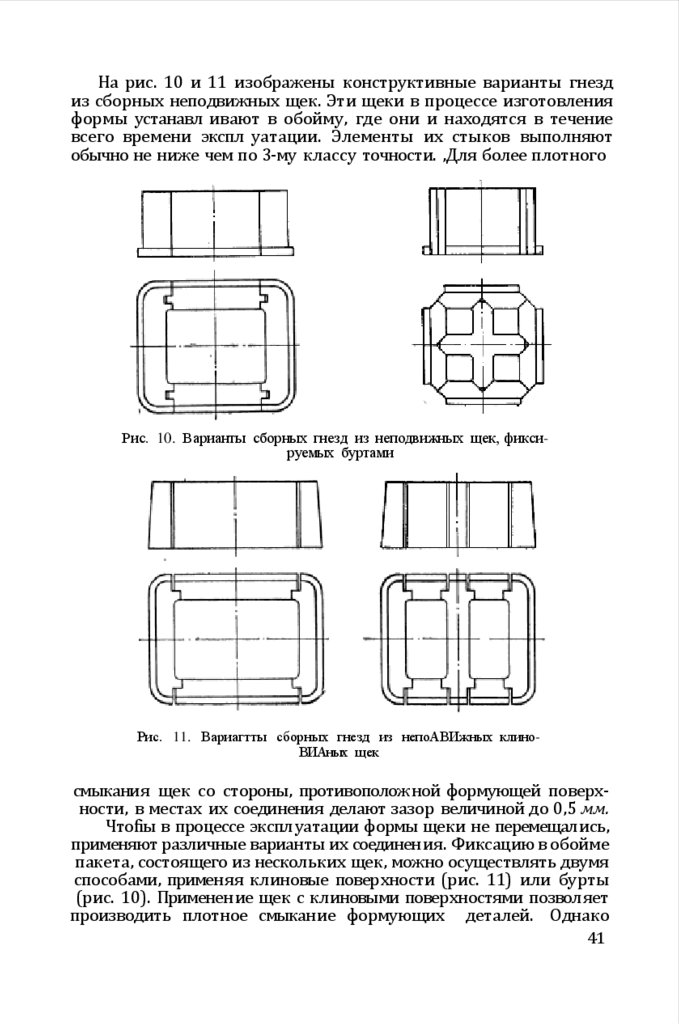 в виде клиновых блоков или кассет. Их конструкци я мало чем отличается от конструкции формующих элементов съемных фор м. Это