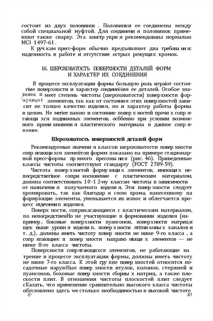 l6. Шероховатости повер хности деталей форм и xapактер их соединения