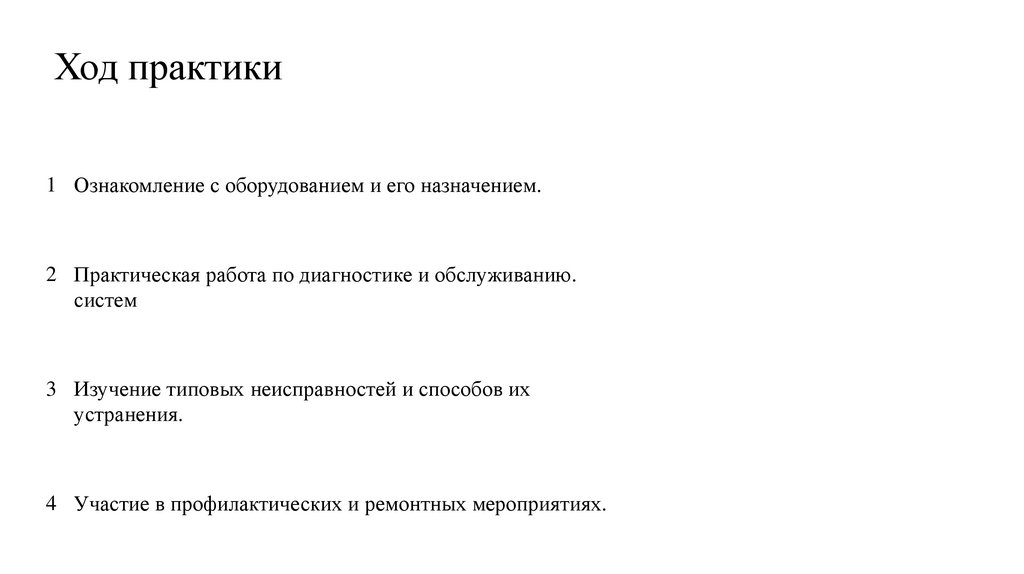 Ход практики1 Ознакомление с оборудованием и его назначением.