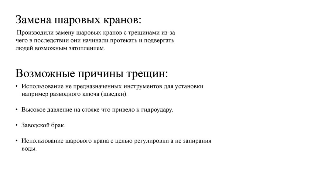 Замена шаровых кранов:Производили замену шаровых кранов с трещинами из-за