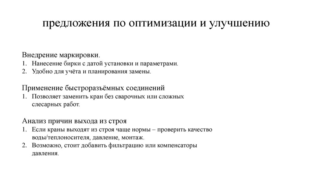 предложения по оптимизации и улучшениюВнедрение маркировки.
