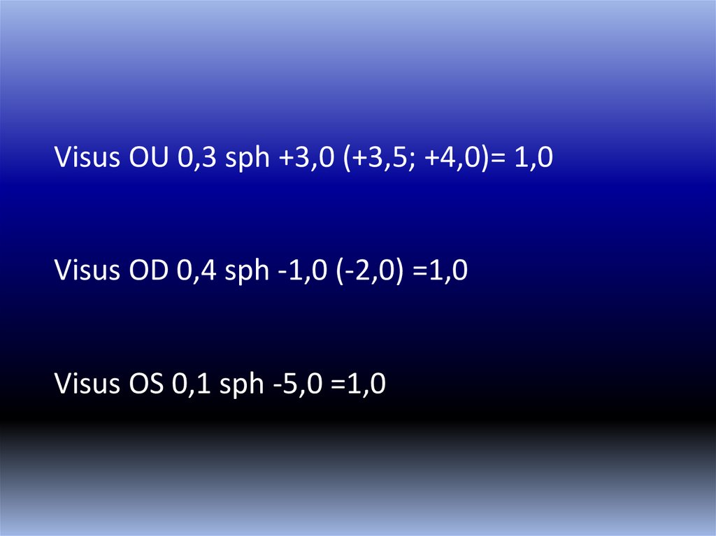 Visus OU = 0, 3 После приставления стекол + 0, 5 Д стал видеть лучше.