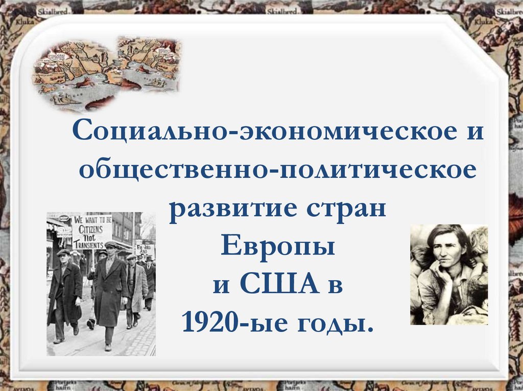 1. Социально-экономическое и общественно-политическое развитие стран Европы и США в 1920-ые годы.