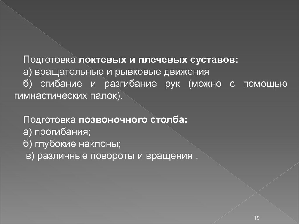 Подготовка локтевых и плечевых суставов:а) вращательные и рывковые движения
