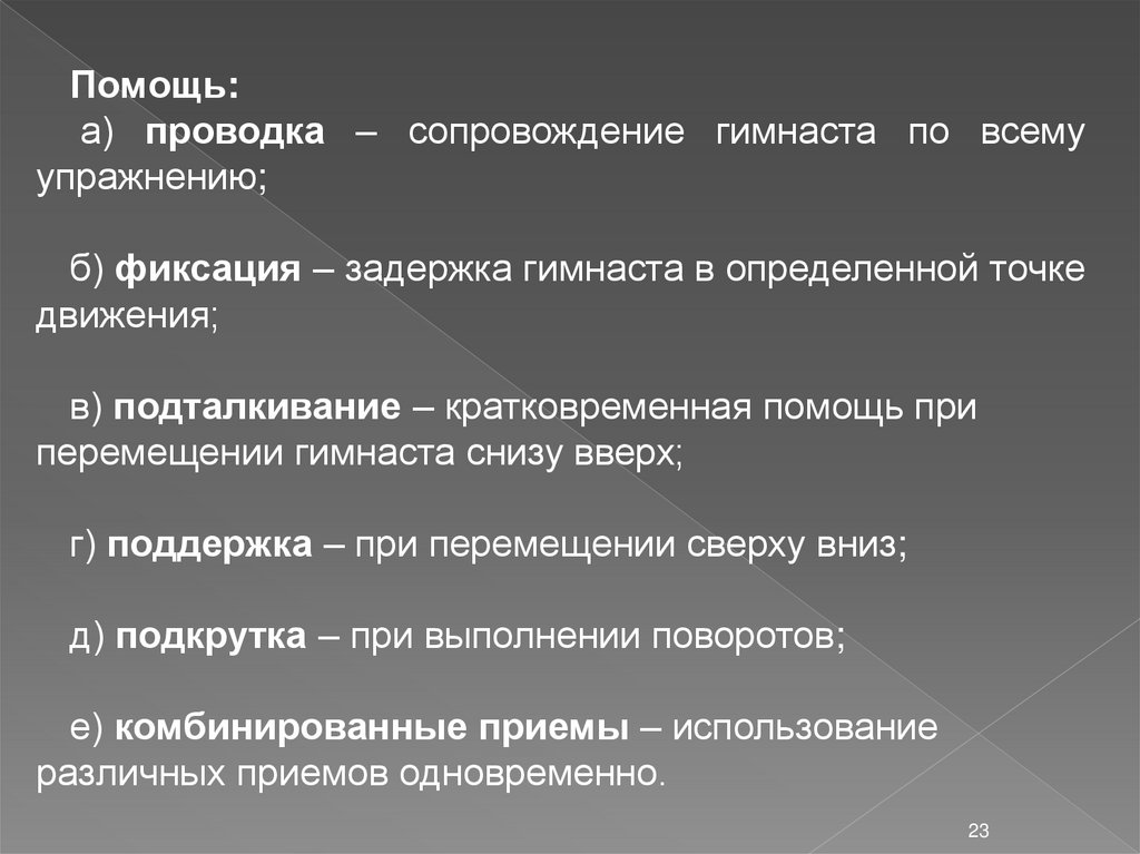 Помощь:а) проводка – сопровождение гимнаста по всему