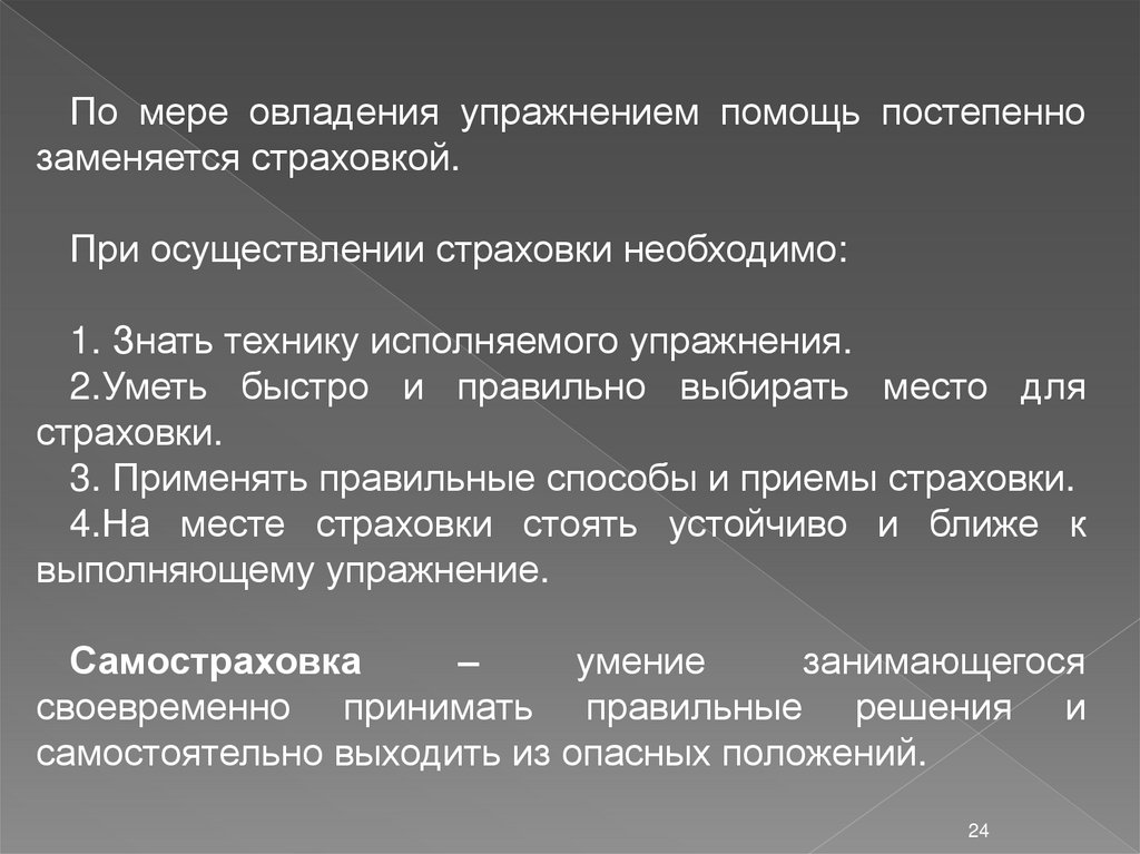 По мере овладения упражнением помощь постепеннозаменяется страховкой.