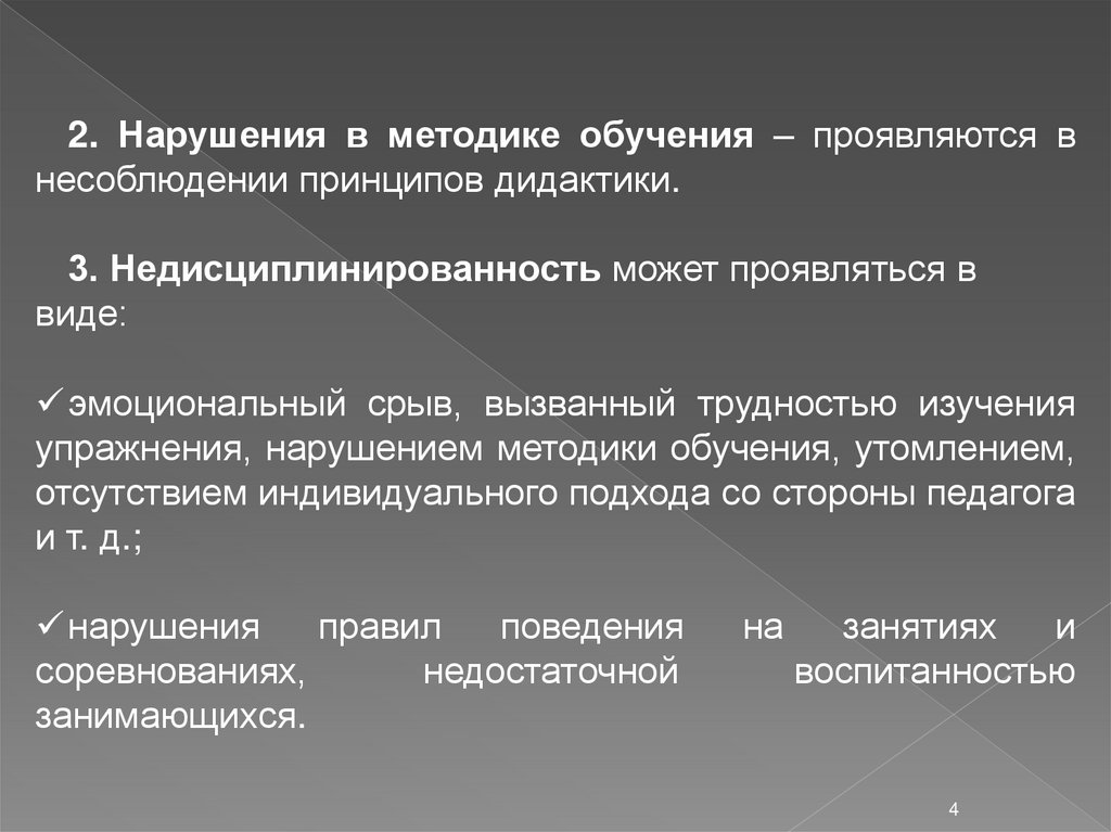 2. Нарушения в методике обучения – проявляются внесоблюдении принципов дидактики.