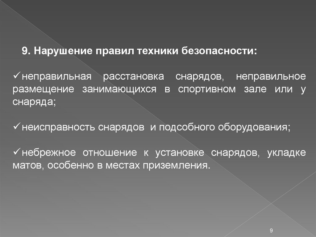 Основные причины травматизма:1. Нарушения в организации занятий: