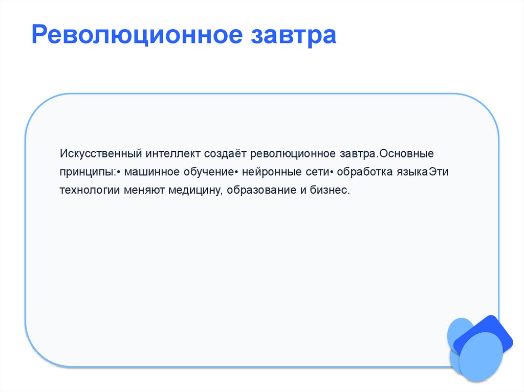 Революционное завтраИскусственный интеллект создаёт революционное завтра.Основные