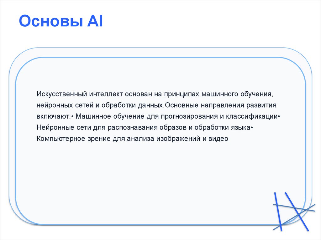 Основы AIИскусственный интеллект основан на принципах машинного обучения,