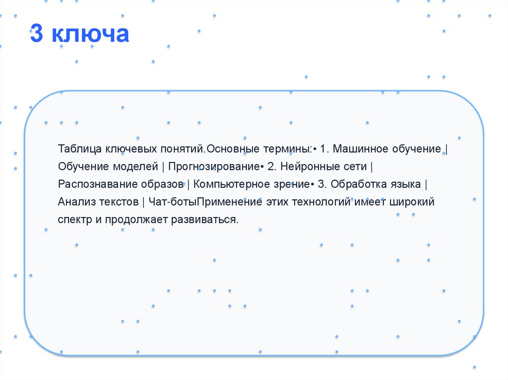 3 ключаТаблица ключевых понятий.Основные термины:• 1. Машинное обучение |