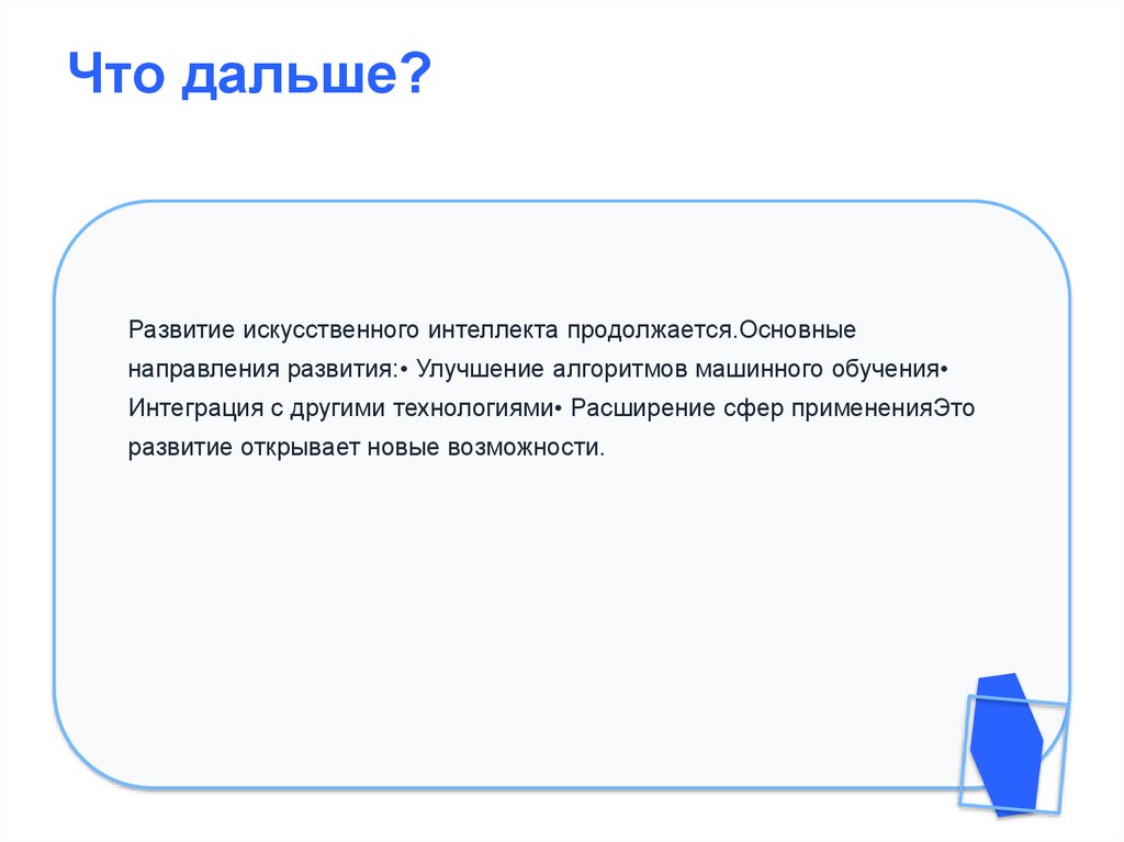 Что дальше?Развитие искусственного интеллекта продолжается.Основные