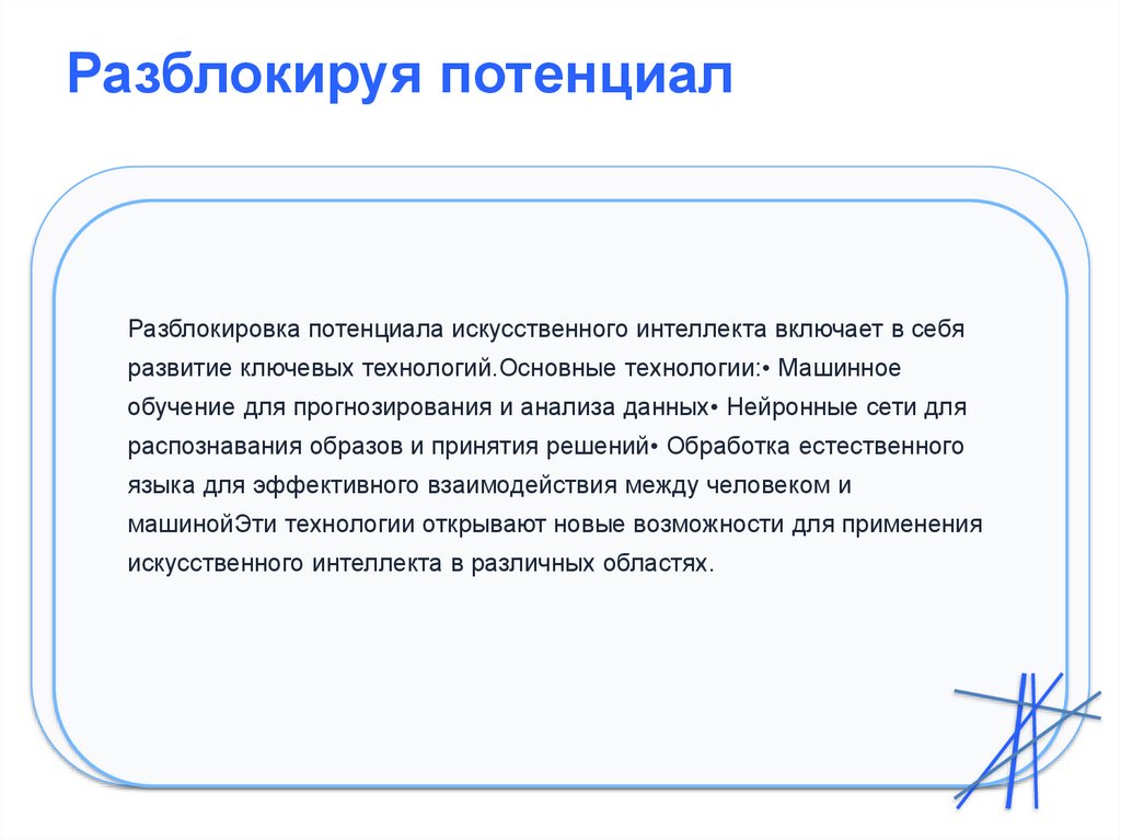Разблокируя потенциалРазблокировка потенциала искусственного интеллекта включает в себя
