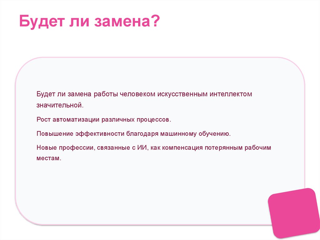 Будет ли замена?Будет ли замена работы человеком искусственным интеллектом