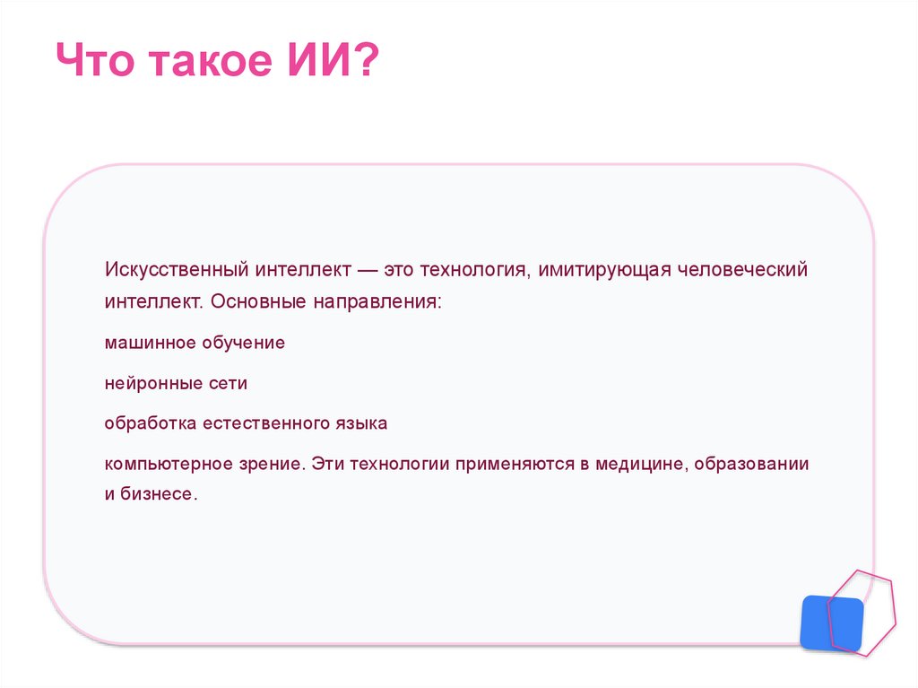 Что такое ИИ?Искусственный интеллект — это технология, имитирующая человеческий