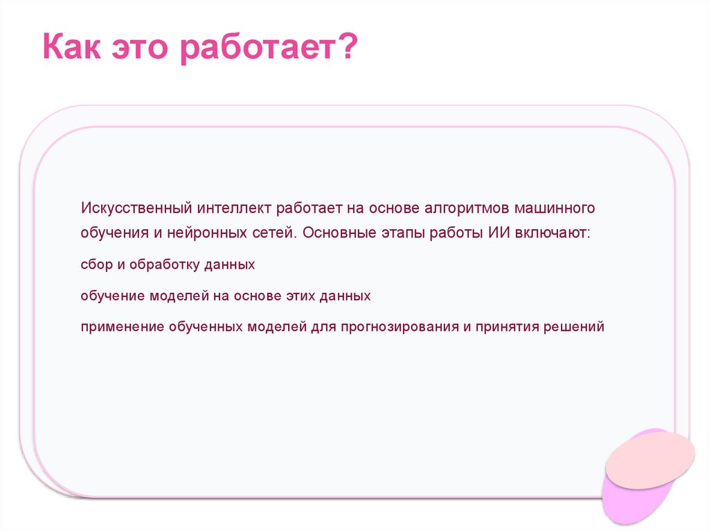 Как это работает?Искусственный интеллект работает на основе алгоритмов машинного