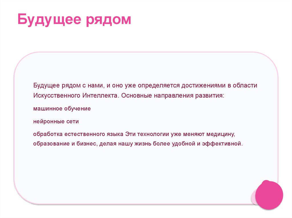 Будущее рядомБудущее рядом с нами, и оно уже определяется достижениями в области