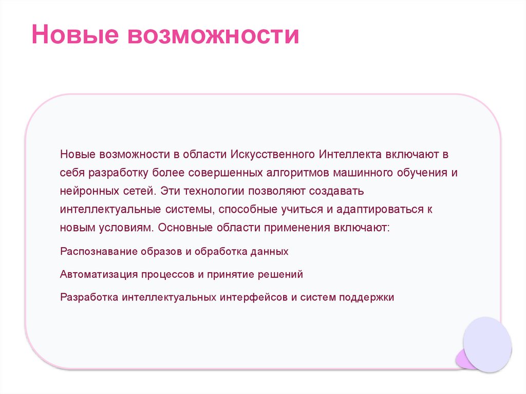 Новые возможностиНовые возможности в области Искусственного Интеллекта включают в