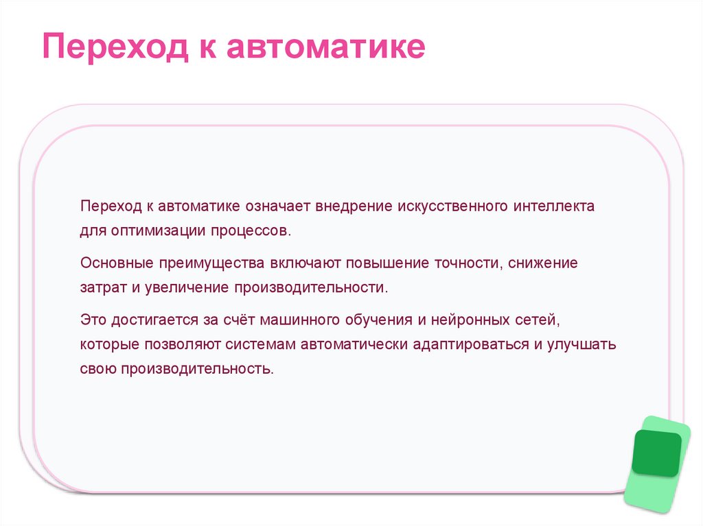 Переход к автоматикеПереход к автоматике означает внедрение искусственного интеллекта