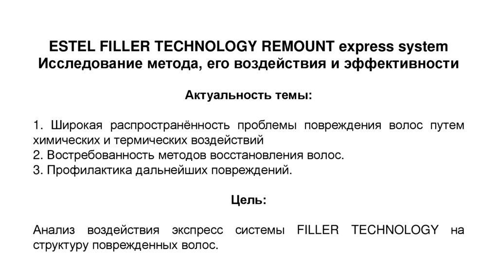 ESTEL FILLER TECHNOLOGY REMOUNT express systemИсследование метода, его воздействия и эффективности